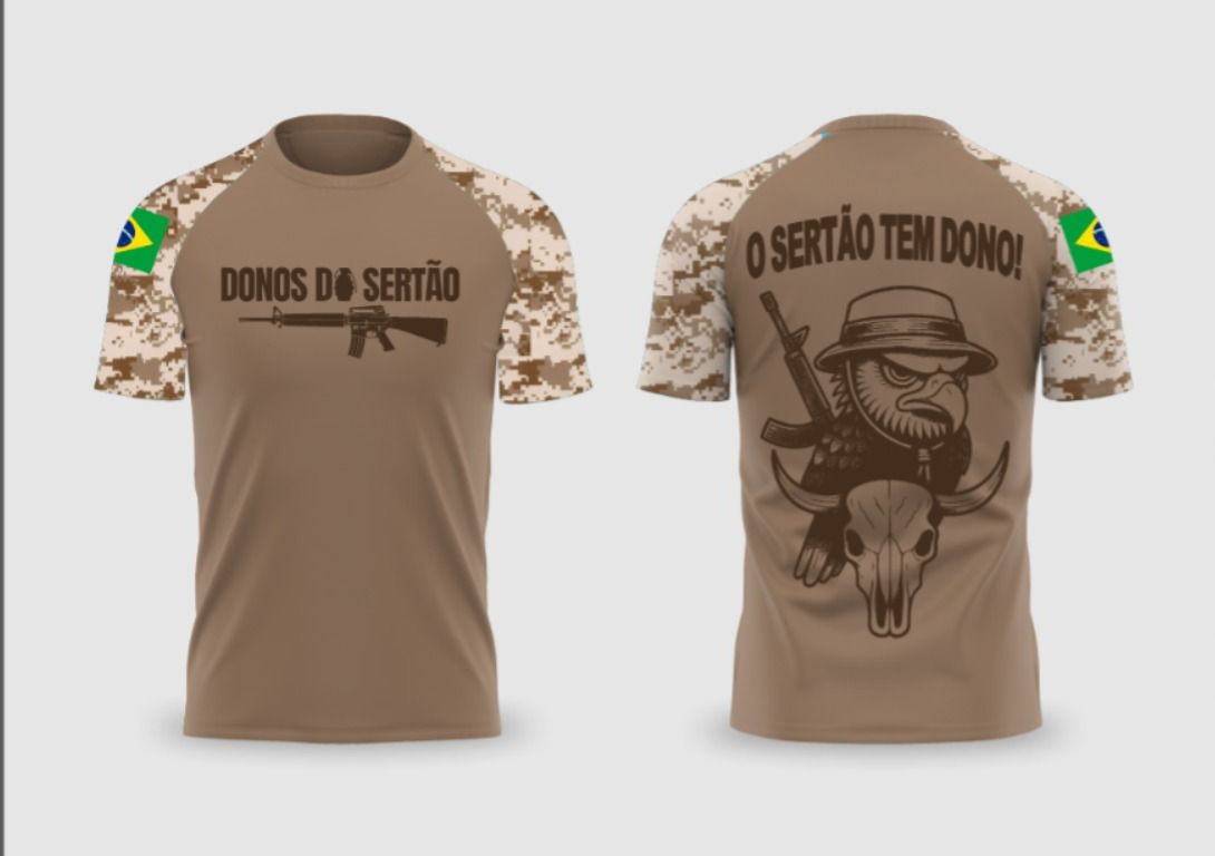 A Camisa Carcará Dono do Sertão é uma homenagem à coragem, resistência e determinação das forças policiais que defendem o povo sertanejo. Assim como o carcará, ave símbolo de bravura e imponência, esta peça traduz a força e a identidade de quem vive e protege o sertão.